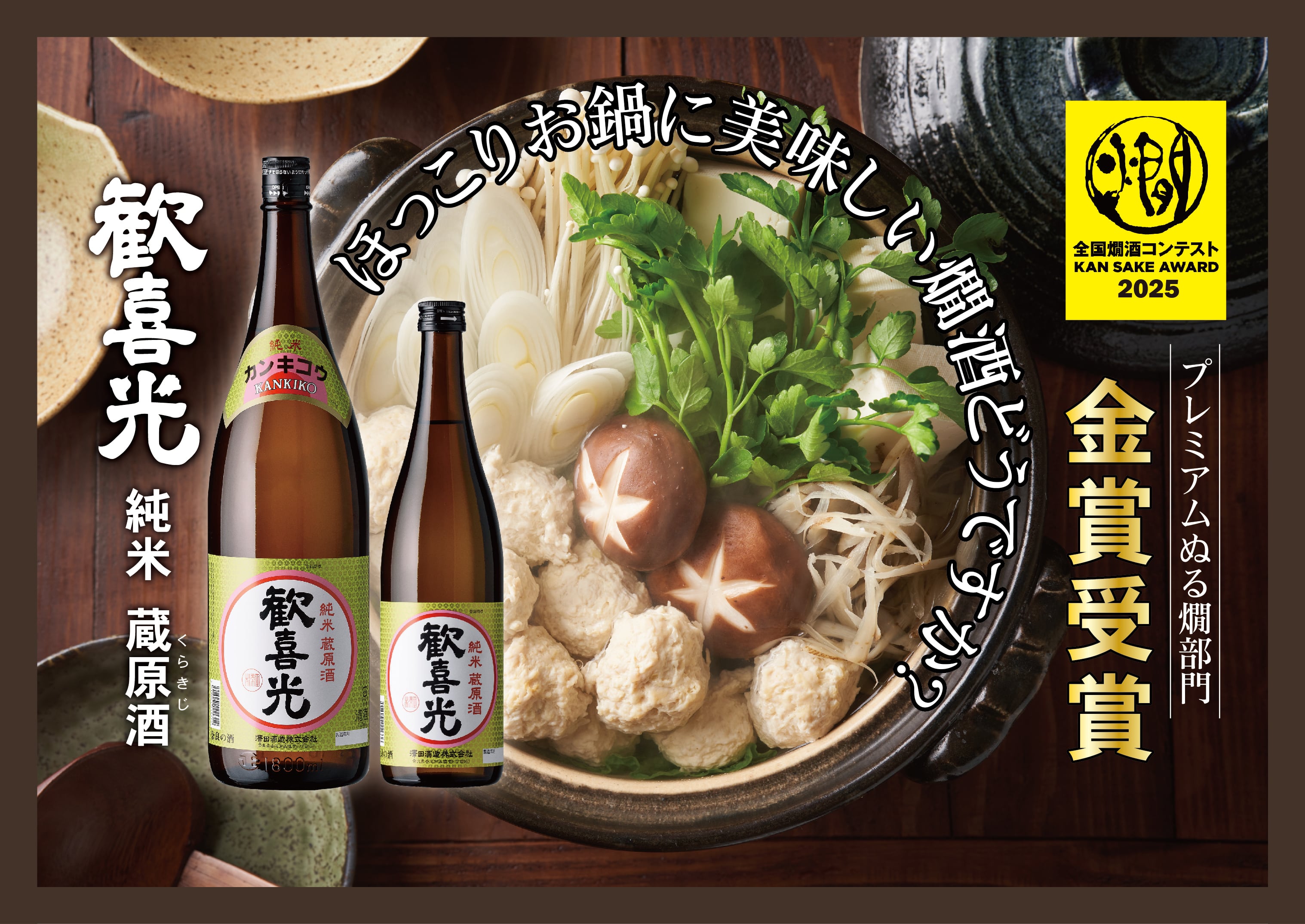 - 2025.12.1 新商品の『歓喜光 純米原酒「第9」』(音楽振動熟成酒)ならびに、数量限定『歓喜光 純米 しぼりたて生酒』、『歓喜光 純米 南都だくだく』(にごり酒)が販売開始となりました。